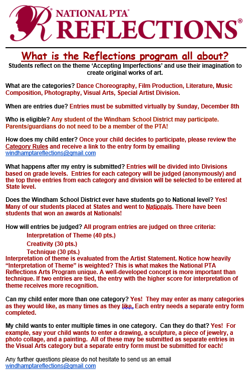 Did you know that the program is available to all students? National PTA Reflections offer a category for accessible arts for those that want to enter that category. Below are the category guidelines…